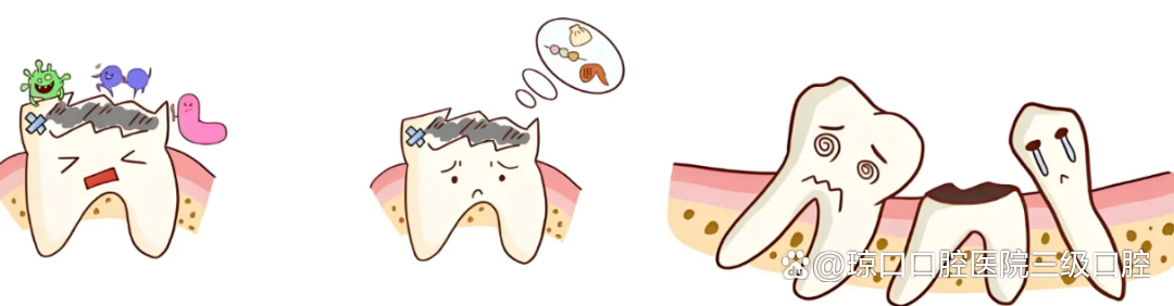 第1阶段:蛀牙小洞不补 → 细菌侵蚀牙髓 → 剧烈牙痛。